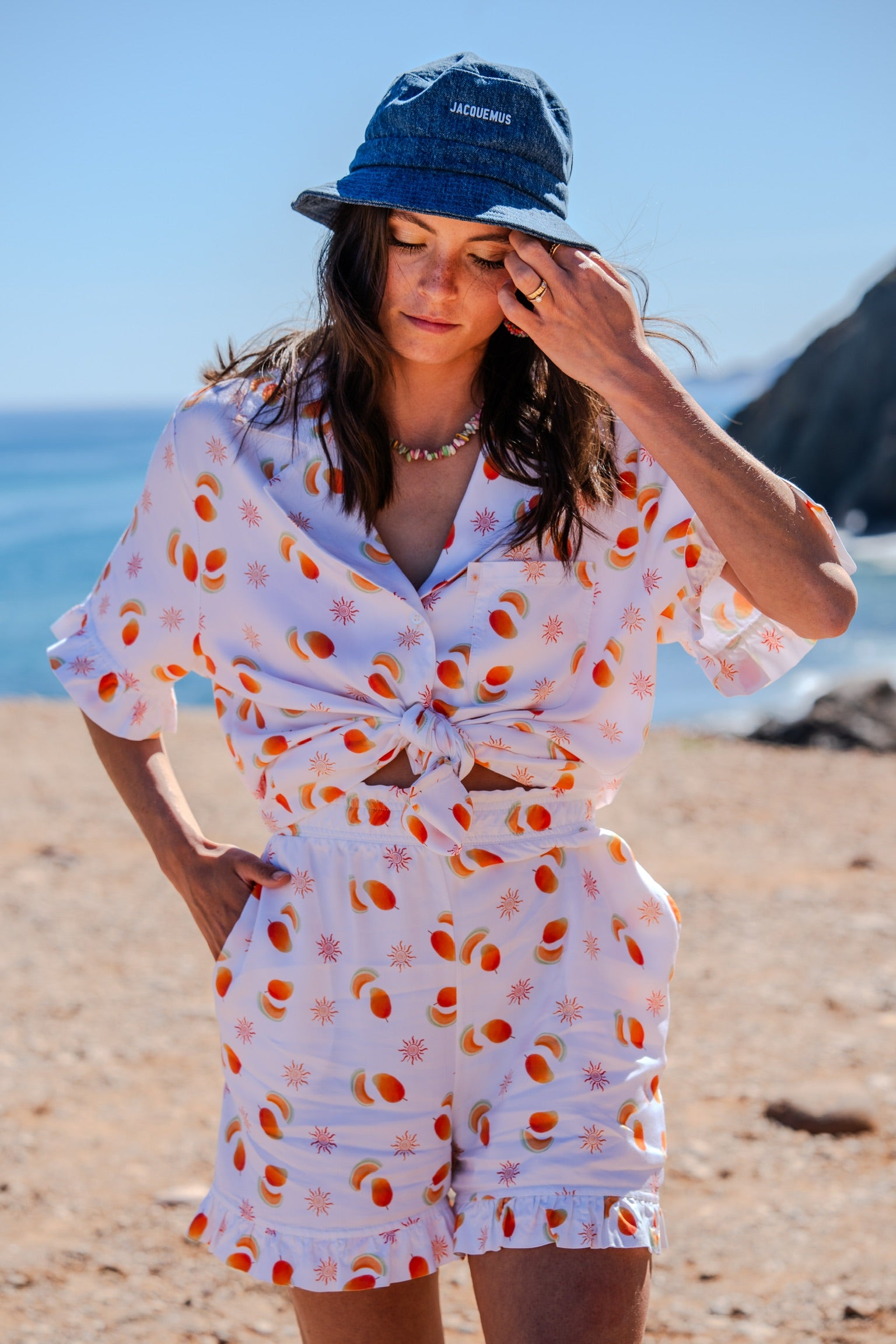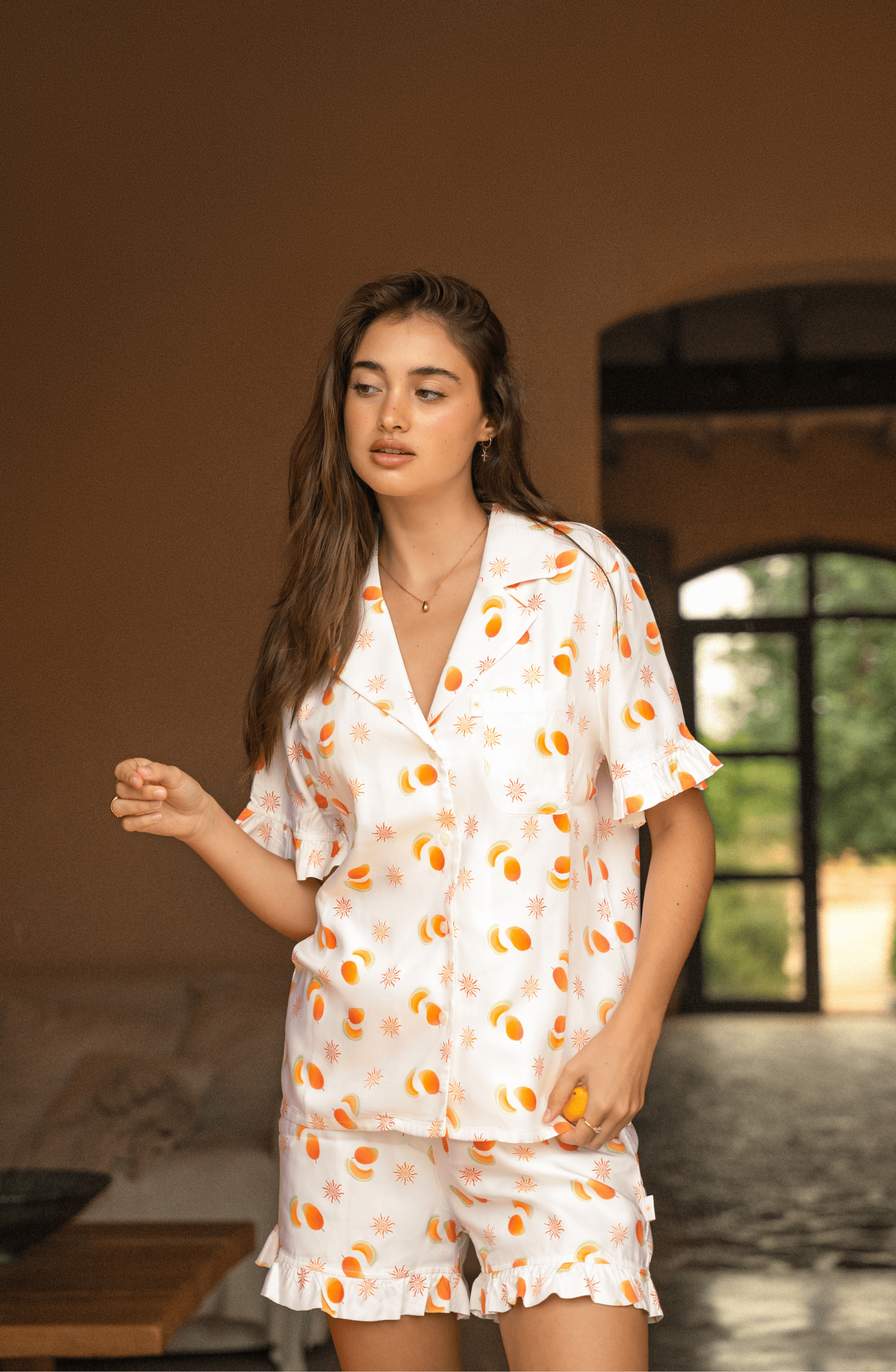 Deze print is een ode aan lange, zonnige dagen en zwoele avonden. Een onbezorgde, tropische vibe waar je nooit genoeg van krijgt. Of je nu wakker wordt met de eerste zonnestralen of nog even nageniet van een lange zomeravond, deze print laat je dag stralen, van ‘s ochtends vroeg tot ‘s avonds laat!
